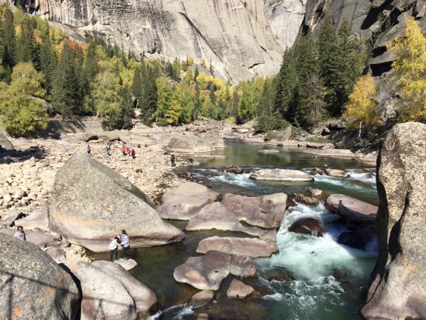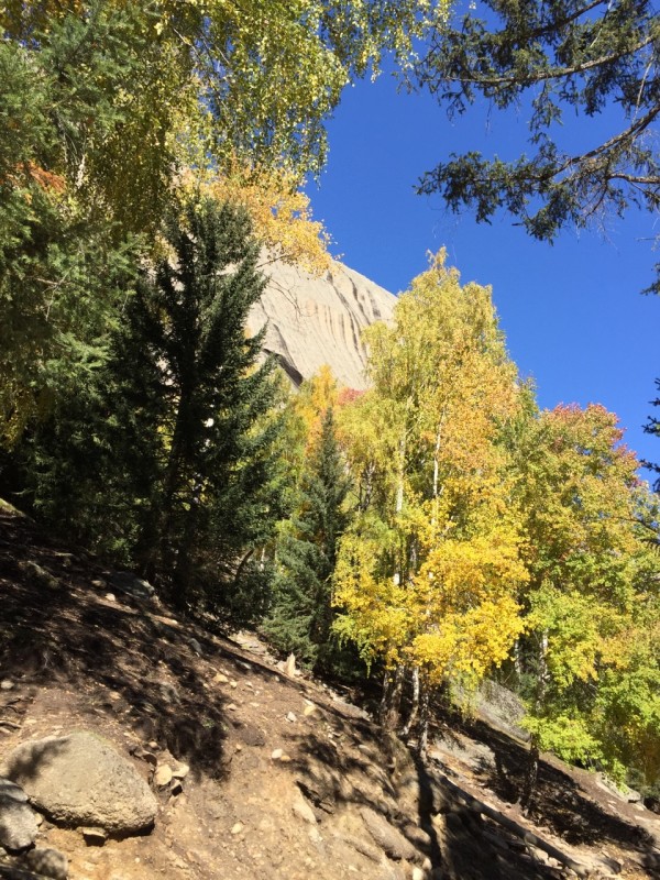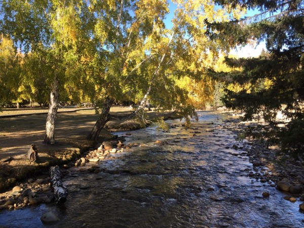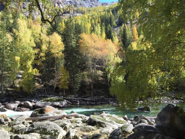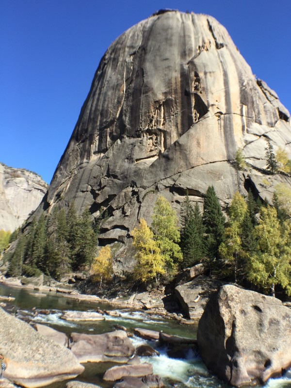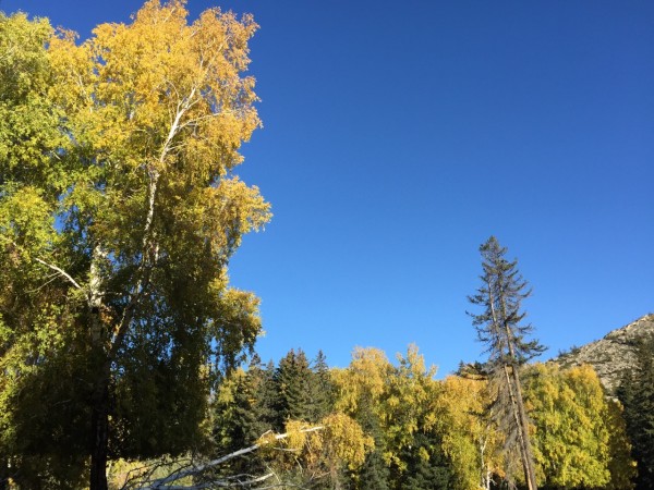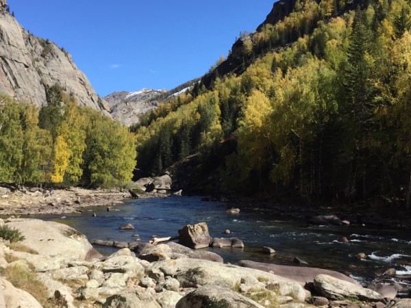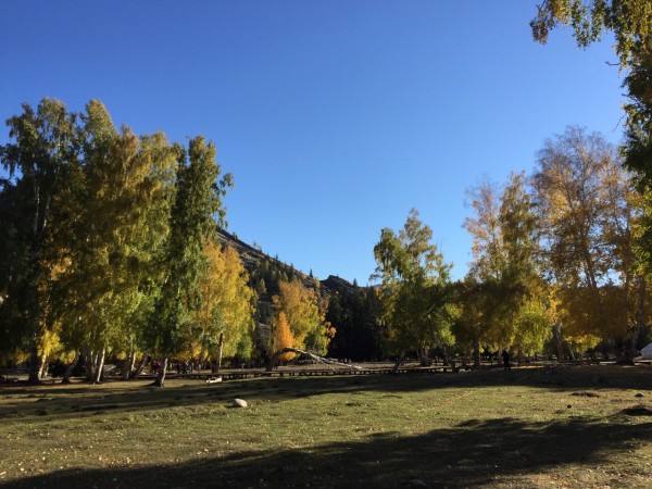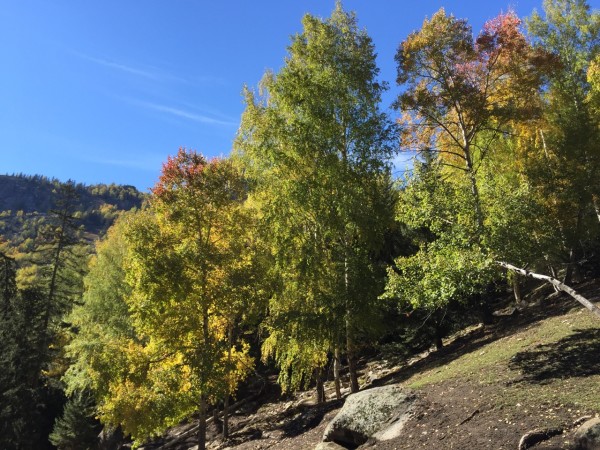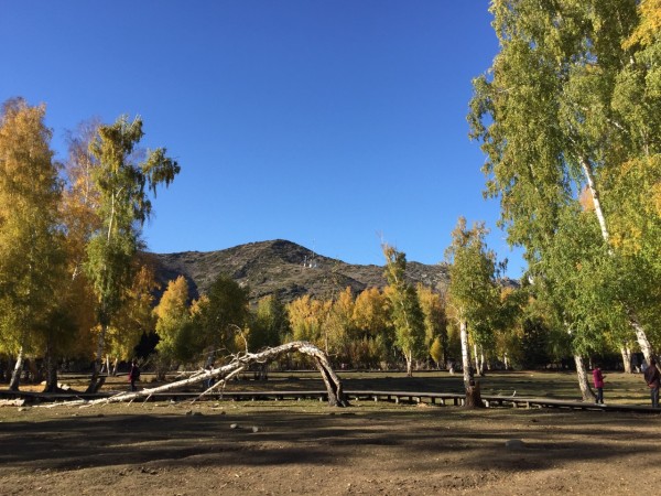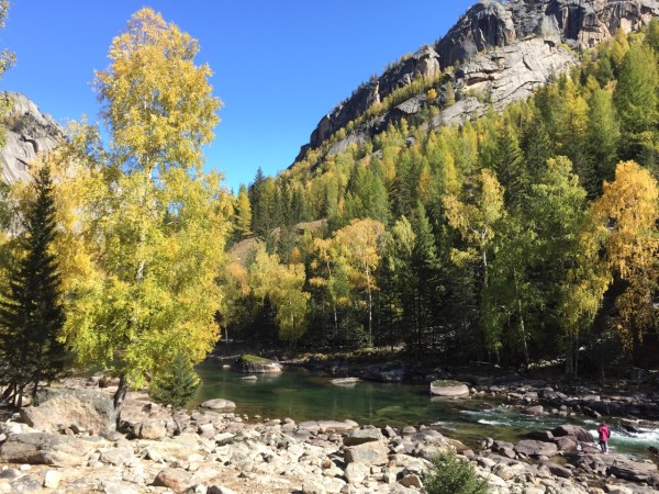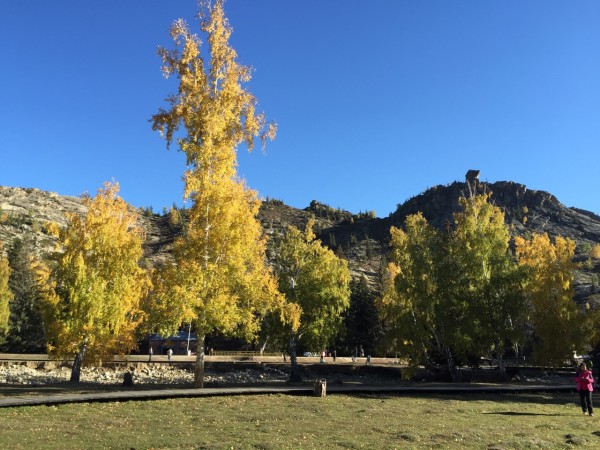 昨下午进入可可托海大景区,看了可可苏里、三号矿坑,今天就玩可可托海主景区,包括大峡谷。可可托海,位于富蕴县东北48公里,是中国第二冷极(第一是漠河)。可可托海,哈萨克语是绿色丛林的意思,蒙古语是蓝色河湾的意思。我不再啰嗦地详细描述了,请百度“可可托海"。前几天,这里人山人海,因为中秋佳节,又因为喀纳斯禾木方向大雪封山,大家蜂拥而至,高峰时排队4个多小时才进入景区,进入景区时已经疲惫不堪。今天,人不多,天气好。还是用游览时间表达景区漂亮程度吧,听说半天即可游览完景区,我们用了整整十个小时,真叫早出晚归、恋恋不舍。
